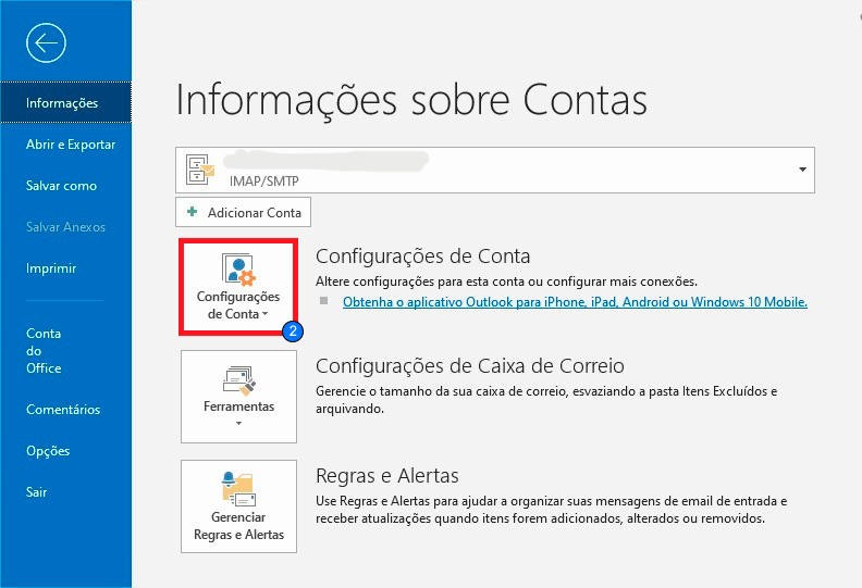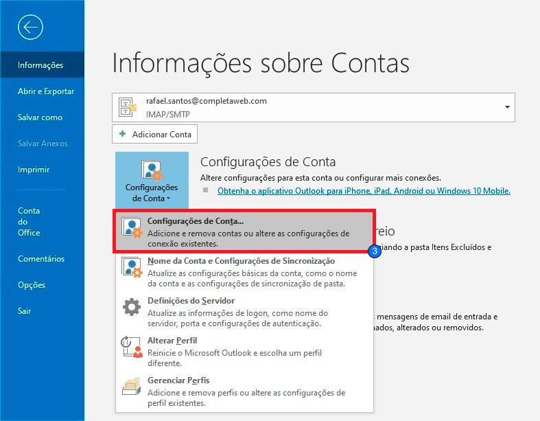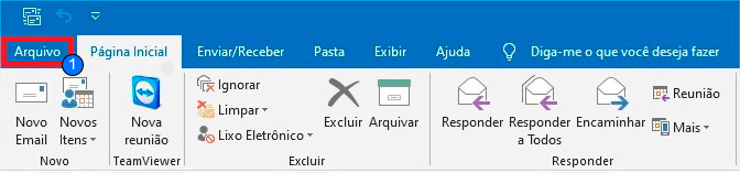 Passo 1: iniciar o Microsoft Outlook 2019, clicar na aba “Arquivo”